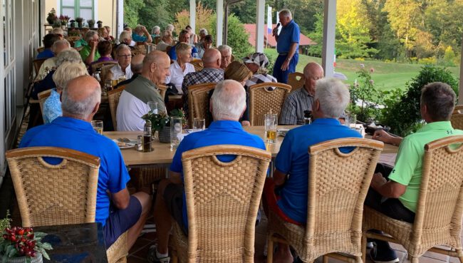 Freundschaftsspiel mit GC-Pfaffing-Wasserburger Land e.V. Mit 52 Golferinnen und Golfern war dies das bestbesuchte Freundschaftsspiel seit Bestehen dieses Turniers. Die Spielart „2er Texas-Scramble als Lochspiel“ ist allseits sehr beliebt. Platz und Wetter in bester Verfassung. Unsere Pfaffinger Gäste überraschten uns mit ihrem Outfit. Alle trugen einheitlich, schöne blaue Polohemden mit Pfaffinger Logo. Chapeau: das sah wirklich klasse…