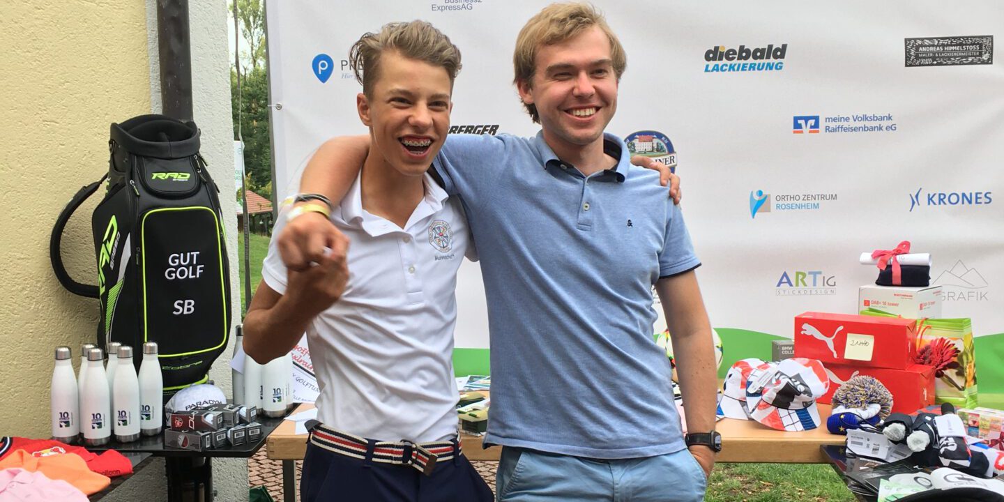 Die zwei jungen Initiatoren des Charity-Turniers Sebastian Pertl (14) aus Raubling und Phil Ladehof (23) aus Flensburg sind enge Freunde. Die beiden haben sich im Deutschen Zentrum für Kinder- und Jugendrheumatologie in Garmisch-Partenkirchen kennengelernt. Dort wurden sie aufgrund ihrer chronisch-entzündlichen Rheumaerkrankung behandelt und haben dadurch ihre Erkrankung in den Griff bekommen. Aus Dankbarkeit gegenüber der Einrichtung hat das Duo am 23. Juli ein Rheuma-Charity-Golfturnier auf der Golfanlage Schloß Maxlrain, zugunsten der Physiotherapie der Klinik organisiert. Die Idee dazu hatte Sebastian, ein leidenschaftlicher Golfer. Er spielt in der Jugend AK 14, erst kürzlich hat er sich sein Single Handicap von 9,8 erspielt. Phil hatte bereits ein Jahr zuvor eine Spenden-Radtour „Von der Ostsee in die Alpen“ auf die Beine gestellt und brachte somit viel Erfahrung bei der Organisation des Turniers mit.