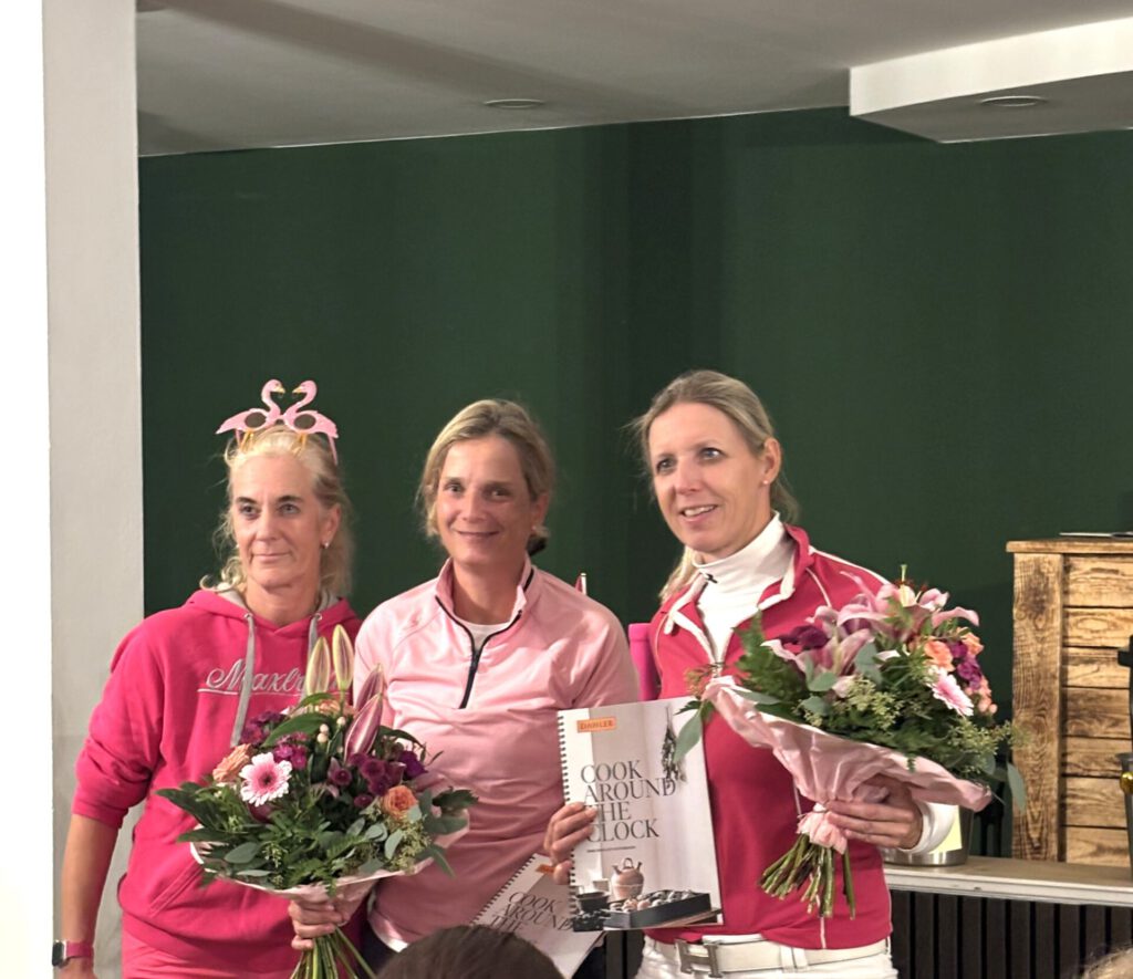 Auch wenn der Himmel an diesem Tag von Wolken bedeckt war, erstrahlte der Golfplatz in Maxlrain in fröhlichem Pink. 47 Spielerinnen ließen sich vom einsetzenden Regen nicht beirren und starteten voller Vorfreude in die „Pink Party Time“. Zur Einstimmung gab es ein Glas Prosecco – die perfekte Starthilfe für einen unvergesslichen Tag.